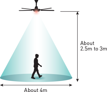 - Recommended fan installation height is 2.5m to 3m at detection range of 4m