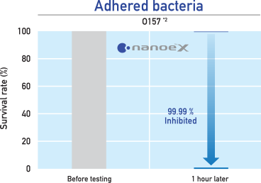 Testing Method: Measured the number of bacteria adhered to a cloth in an approximately 45L airtight test room