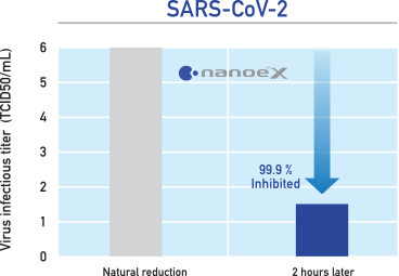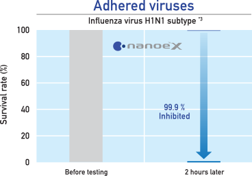 Testing Method: Measured the number of viruses adhered to a cloth in an approximately 1m3 airtight test room