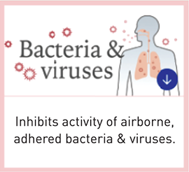 Inhibits viruses [99.9%) and bacteria [99.99%)