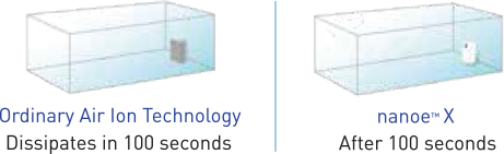 Coated in water, nanoe™ X has six times longer life spans than ordinary air ion technology