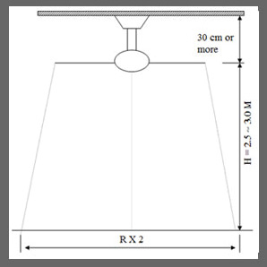 Ceiling Fan installation height ≥ 30 cm.