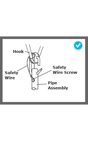 Make sure the safety wire is securely loop and screw onto pipe.